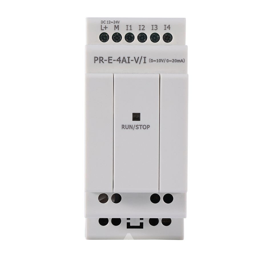 PR-E-AI-V/I — модуль расширения для контроллеров серий PR, оснащённый 4 аналоговыми входами. Поддерживает измерение сигналов 0–10 В и 0–20 мА (режим выбирается через ПО). Отличается высокой точностью, удобной интеграцией и компактным исполнением для монтажа на DIN-рейку.